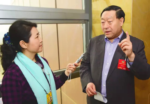 3月4日,全国政协常委,国家电网公司董事长、党组书记刘振亚参加全国政协十二届四次会议经济界别34小组讨论,就构建全球能源互联网接受记者采访。