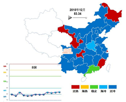 从分布地区看,甘肃、上海、重庆、福建、黑龙江指数处于“过热”区,广东指数处于“稳定”区,河南指数处于“渐冷”区间,其他地区指数仍为“过冷”。