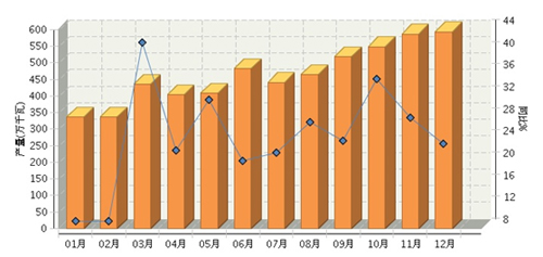 根据国家统计局公布数据,2015年1~12月,全国锂离子电池行业累计完成产量同比增长3.04%。其中:12月份完成产量同比增长20.06%。2015年全国锂离子电池行业月度产量及同比如下图所示。