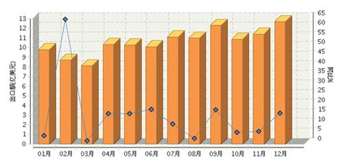 根据海关总署公布数据,2015年1~12月,全国电池行业累计完成出口额同比增长12.91%。其中:12月份完成出口额同比增长16.09%。2015年全国电池行业月度出口额及同比如下图所示。