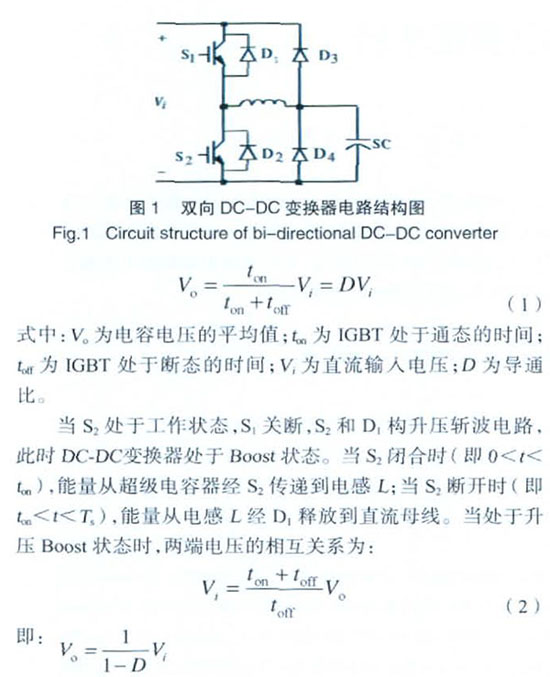 为了满足使用需要,采用的变换器应该是电流可反向的两象限变换器,当电容对外放电时,DC-DC变换器处于升压状态,而对电容充电时,电流反馈,DC-DC变换器处于降压状态。