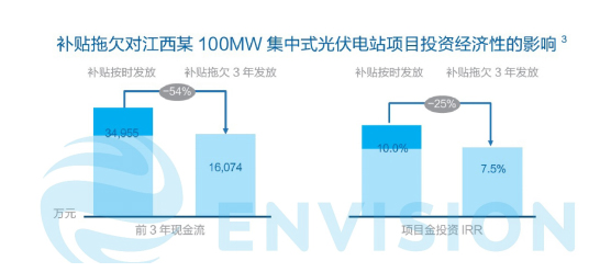以江西某项目为例,补贴拖欠三年,现金流减少1.9亿元,IRR严重下滑。
