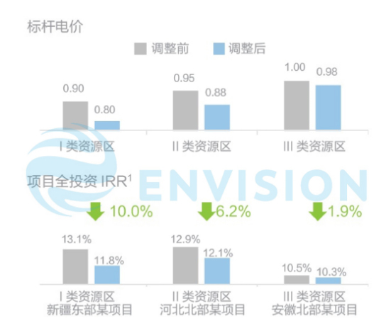 如图所示,III类资源区与I、II类资源区相比,投资价值得到凸显。III类资源中大部分地区不存在限电问题,并且在新的电价调整政策下,III类资源区受到的影响最小,加上部分地区对集中式光伏电站有较好的鼓励政策和补贴优惠,这些都是III类资源区投资价值得以提升的原因。