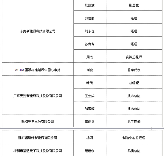 以下是广东省动力电池标准化技术委员会年会出席名单(第一批):
