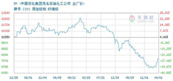 主要原材料PP最近的价格走势如下图: