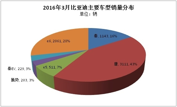 插电式混合动力乘用车领域,比亚迪依靠秦和唐两款车使得3月销量回升至4000辆水平,占比84%。两款车型的销售比例也由2月1:2调整为3月近乎1:3的比例。比亚迪秦、唐3月销量分别为1143辆、3111辆。其中比亚迪唐较之上月销量增加近千辆,而秦则保持不足百辆的增长。两款车型销量占比亚迪企业总销量的49%。