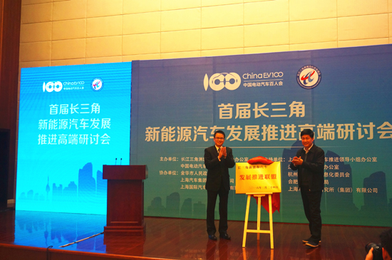 在上海市新能源汽车推进办公室主任刘建华主持下,上海市合作交流办公室主任、长江三角洲城市经济协调会秘书长姚海与金华市副市长傅利常为新能源汽车联盟进行揭牌,标示着长三角新能源汽车发展推进联盟正式成立,通过长三角地区30余个城市的共同发力、协调配合下,共同解决基础设施中出现的重点、难点问题,推进新能源汽车在长三角地区的长足发展。