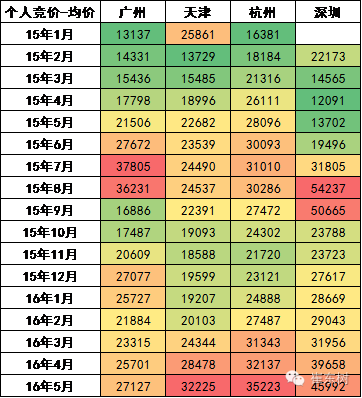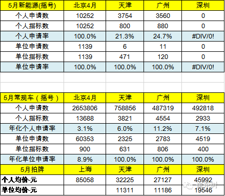 前期随着深圳房价暴涨,因此前几个月的个人拍牌价格偏高,但随着经济下行压力和单位用户购买力不足,个人拍牌价格也出现下调趋势。1月的广州价格下降到2.5万,相对7-8月的高价下跌较多。深圳也是暴跌一半,天津和杭州也是较高点大幅下降。随着今年的房价暴涨,需求心态不稳,汽车拍牌价格增长速度很快。目前天津和杭州的牌照拍牌价格创出新高,深圳处于次新高状态,有利于新能源车的销售。尤其是深圳的牌照价格暴增到4.6万,去年5月才1.3万,拍牌的财富效应体现。