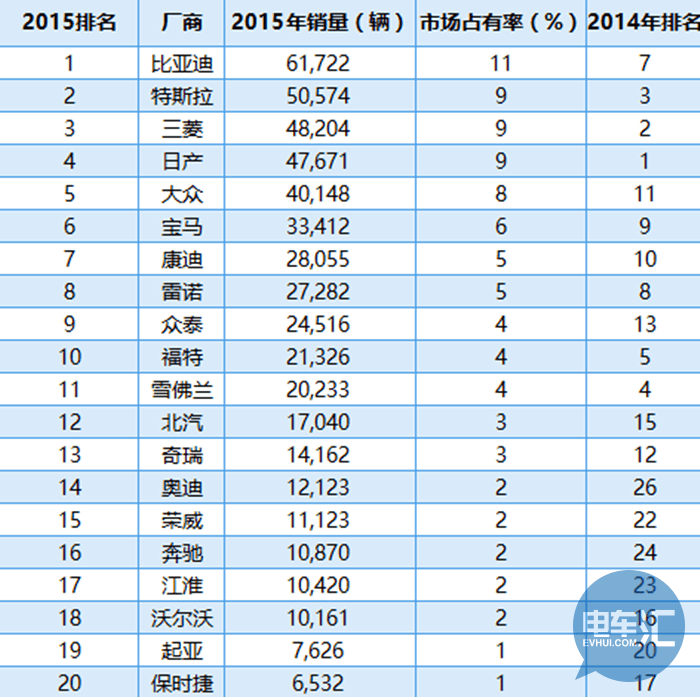 市场的蛋糕大,谁都想咬几口中国国内电动车产量从去年1月的6599量,到去年末增长到9万9880辆。今年中国电动车增长势头依然强劲。中国去年电动车的普及辆达到50万辆,预计到2020年,中国电动车普及辆将达到457万辆。