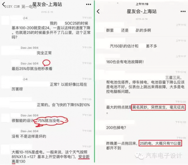 2.网络上的一些帖子描述了电动汽车的趴窝遭遇