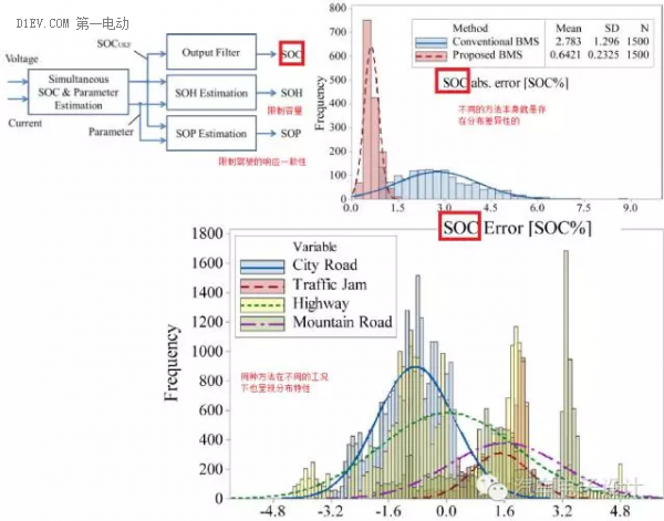 不管如何来做,SOC的计算误差都与工况强相关,这里得出的SOC算法,对于一台车、一种化学体系有效。即使是一种SOC算法,在不同的使用情况下,其精度差异有变化。这里还有一个很大的温度效应,在一定的区间内(0~25度),这个精度是有效的,在其他范围内精度会变差,这就造成了参数与热管理系统的强耦合。