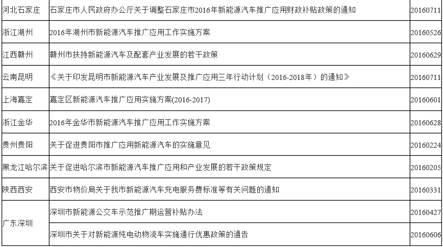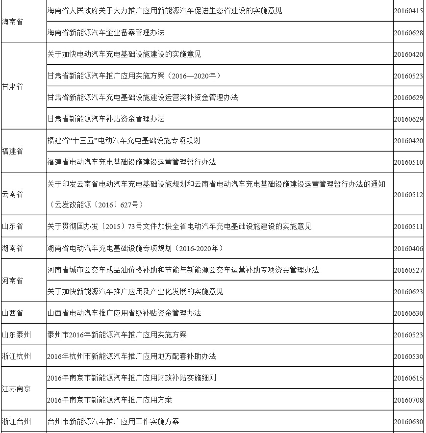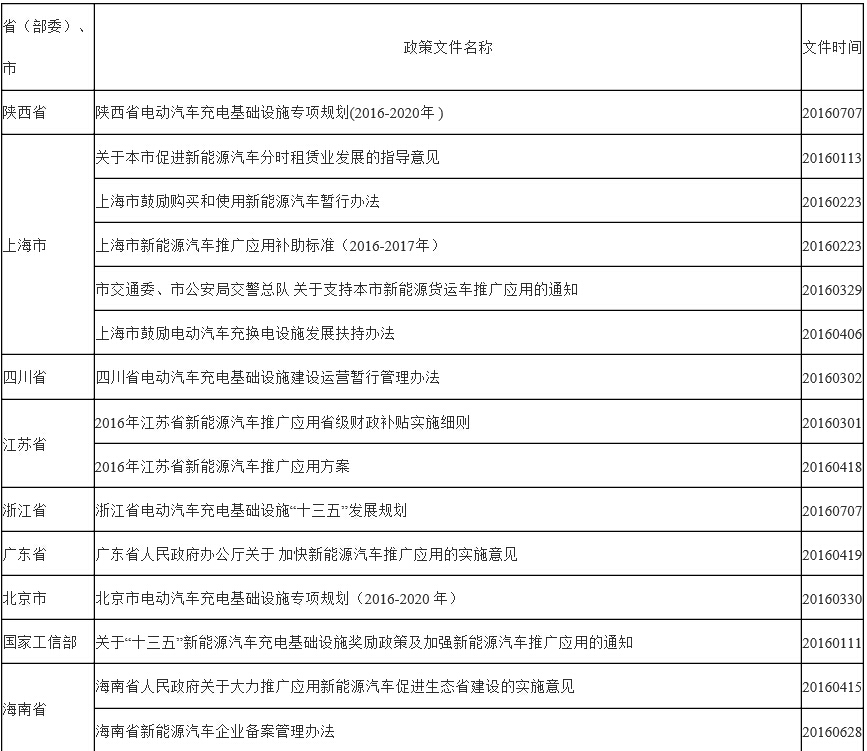 在梳理2016年新能源汽车各地政策之前,笔者没有想到2016年仅9个月,关于新能源汽车政策就达43项之多,涉及到30个省(部委)、市等地区,而且因为从1月开始由于对新能源汽车“骗补”的调查,新能源汽车正在处于一个“退烧”的状态,这样密集的政策一方面体现了政府对新能源汽车的高度关注和支持,另一方面也反映了新能源汽车出现了“发烧”,从2016年出台的政策上,我们可以分析到,在国家、中央层面已经开始注意,2016年仅出台了《关于“十三五”新能源汽车充电基础设施奖励政策及加强新能源汽车推广应用的通知》这一个政策,其他的都是关于新能源汽车标准体系的完善,这是国家较为明显的一个举措,力促提高新能源汽车发展的质量与技术水平,而不是单一的产业规模。
