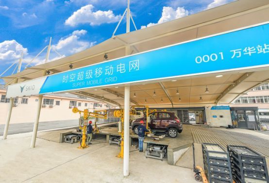 换电场景:时空移动电网能做到辐射城区半径5公里,为每天20个小时跑在路上的车辆提供能源支持。目前分为手工换电站和半自动换电站两种。半自动化换电站的场景很具未来感:从电动汽车进入换电位置,工人通过操作半自动化的机械臂,从汽车电池仓位取出,再由机械臂将满电电池插入汽车,全程只需3-5分钟。