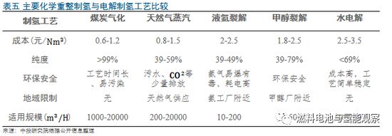 其中氯碱副产品制氢,由于是在现有氯碱工业体系中,收集原先直接排掉的副产品氢气,对资源、环境不增加任何新的负担,且成本适中(1.3-1.5元/m3),所制取的氢气纯度高达99.99%,是目前较为适宜的制氢方式。但此种制氢方式受规模所限,无法满足远期氢能源车放量后的需求。长期来看,综合考虑环保、成本等因素,除氯碱、电解制氢外的氢产能应由化学重整制氢工艺满足。