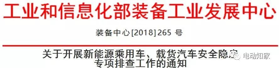 2018年9月,国家工信部就发布《关于开展新能源乘用车、载货汽车安全隐患专项排查工作的通知》,重点对新能源乘用车、载货汽车产品开展安全隐患排查工作。同时“启动车辆安全预警及重大安全事故调查机制”,新能源乘用车、新能源货车发生起火、燃烧等安全事故,未造成人员伤亡的,生产企业应在12小时内(如造成人员死亡或重大社会影响的,应在6小时内)主动上报地方政府新能源汽车工作联席会议牵头部门和工业和信息化部装备工业发展中心,并及时展开事故调查,调查结果留存备查。