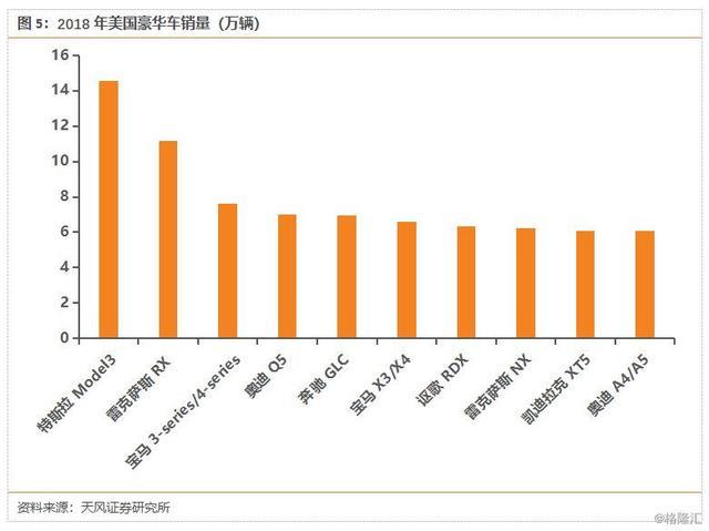 在已发售特斯拉Model 3的海外市场,M3最高月销已过2.5万辆,远超日产Leaf、宝马i3等老一代传统车企的新能源车型过去所取得的最佳水平,更在美国市场超过雷克萨斯RX(18年11万辆)、宝马3系和4系(18年8万辆)、奔驰GLC(18年7万辆)成为销量最高的豪华车。