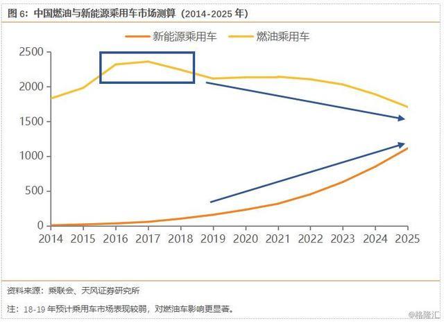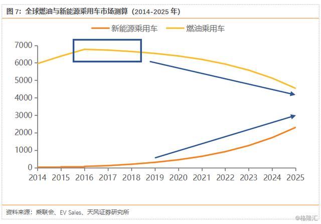 换言之,未来5-10年,电动车迎来蓝海,而燃油车则已见顶衰退。
