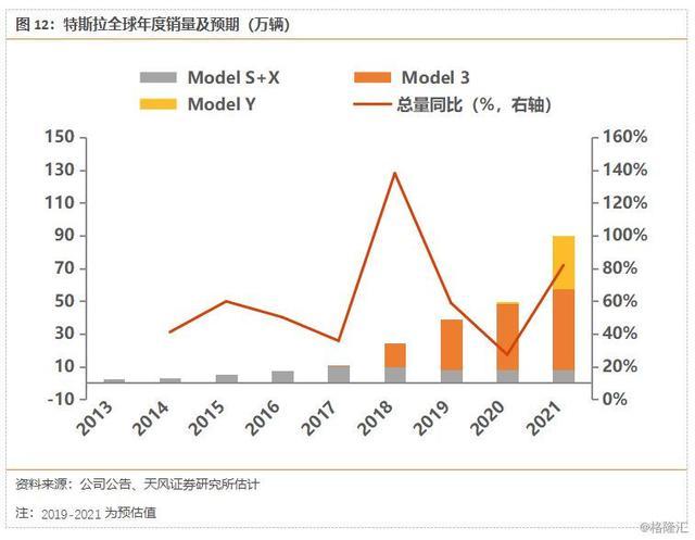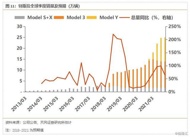 按这个预估,那么到2022年,特斯拉的销量就将超过100万辆。当特斯拉100万辆时,全球新能源车销量也将迫近1,000万辆,成本进一步贴近燃油车,市场将迎来新一波加速渗透。
