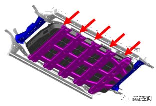 电池包前后端都应有2个以上安装点,安装点分布应均匀,防止出现应力集中点。建议电池包的中间部位布置二到四个连接点,与车身地板横梁连接,有利于提升电池包抵抗冲击和颠簸载荷的能力,也能够提升电池包整体模态频率。