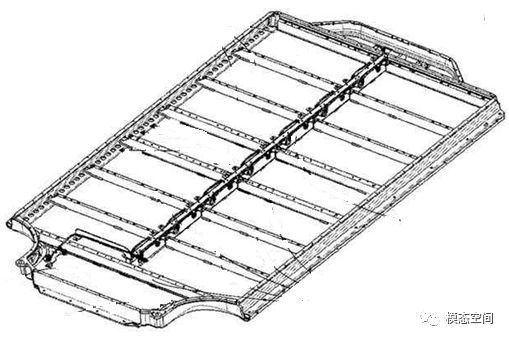 电池包下壳体可采用冲压钢板、挤压铝型材、铝板材或者是铸造铝,国内现在倾向于采用如图9所示的挤压铝型材下壳体,底板用2-4块挤压铝型材拼接,外框架也是挤压铝型,内部横梁焊接在底板上。挤压铝型材底板可以在型腔内设计各种加强筋,能够在保证整体刚度模态的前提下实现轻量化。但从对内部电芯和元器件的防护效果而言,挤压铝型材方案很可能不如铸造铝和冲压钢板方案。