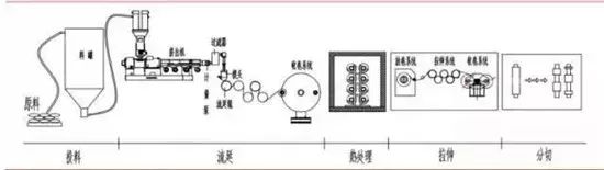 1)投料:将PE或PP及添加剂等原料按照配方预处理后,输送至挤出系统。