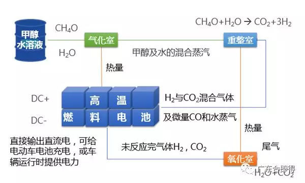 甲醇重整制氢+氢燃料电池系统作为“发电机”系统,主要有三种技术路线: