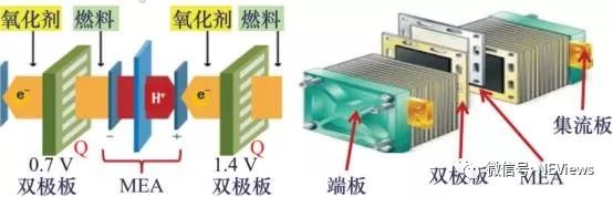 燃料电池结构中最核心的两个部件为MEA和双极板,MEA是集膜、催化层、扩散层于一体的组合件。MEA主要由电催化剂、固体电解质膜和气体扩散层组成。