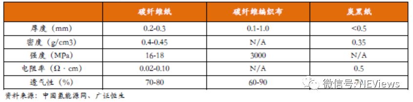 气体扩散层GDL是最容易实现降本的部分,未来规模化生产是发展的重点。GDL位于流场和催化层之间,其作用是支撑催化层、稳定电极结构,并具有质/热/电的传递功能。通常GDL由支撑层(憎水处理过的多孔碳纸或碳布)和微孔层组成(电炭黑和憎水剂构成)。目前主要的气体扩散层有三种:碳纤维纸、碳纤维布和炭黑纸。