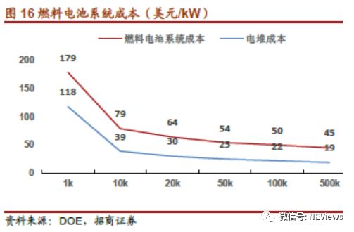 在保证规模生产的前提下,乘用车燃料电池的成本基本可以达到商业化水准,随着未来技术的进步,燃料电池的成本有望进一步下降。