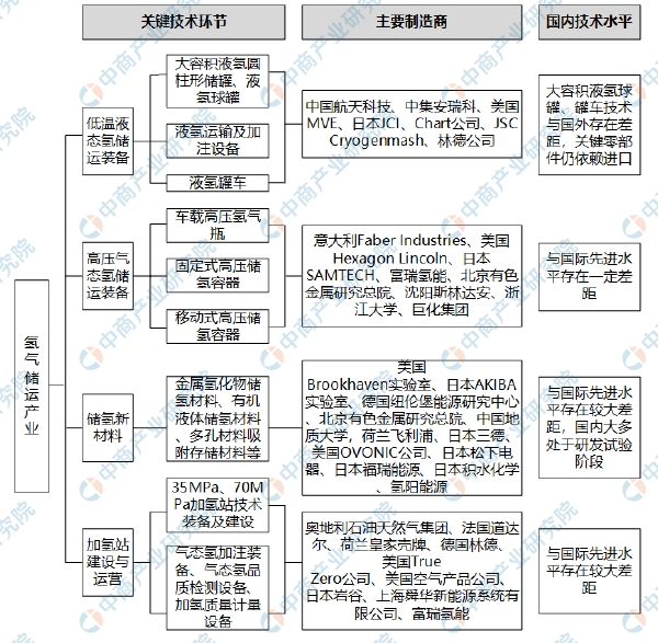 氢气储运产业是氢能产业的中间环节,联结着产业链前端的制氢和后端的氢能应用环节。氢气储运产业包括低温液态储运装备、高压气体储运装备、储氢新材料、加氢站建设与运营等产业子环节。