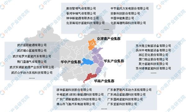 以下为四大氢能产业集群地图以及相关企业汇总一览: