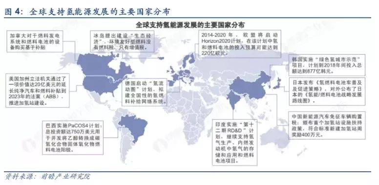 从各国发展角度看,世界主要发达国家从资源、环保等角度出发,都十分看重氢能的发展,目前氢能和燃料电池已在一些细分领域初步实现了商业化。目前氢燃料电池及氢燃料电池汽车的研发与商业化应用在日本、美国、欧洲迅速发展,在制氢、储氢、加氢等环节持续创新。