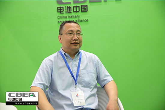 图为深圳科瑞技术股份有限公司常务副总经理李晓波接受电池中国网装房