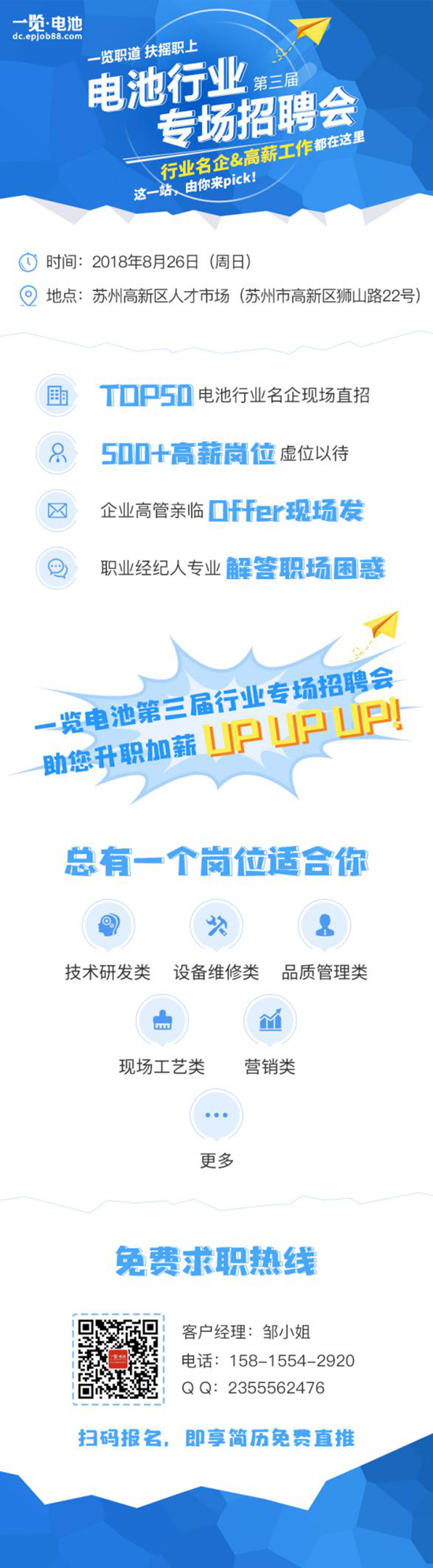 【电池专场招聘会】正在找工作的电池行业求职者,这里有一场大型专场招聘会在等你!