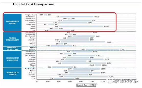 如果单看应用于电网系统的各类储能技术初投资,其成本(美元/千瓦时)为——