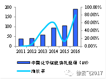 2016年我国化学储能装机量为189.4MW,同比增长达79.5%。与其他储能方式相比,电化学储能具有设备机动性好、响应速度快、能量密度高和循环效率高等优势,是当前国内外储能研究的热点。