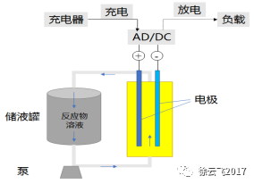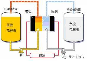 锌镍单液体系开拓液流电池发展新道路。锌镍单液流电池是解放军防化研究院2007年提出的一种新型液流电池,其特点是正负极反应使用同一电解液,无需离子交换膜,从而大大降低了生产成本并简化了电池设计。由于使用碱性电解液,电池长期抗腐蚀能力较好。经试验,电池在1000次循环后能量效率达到86%,优于一般双液流电池。目前这类电池尚处于研发试验阶段,除国内部分机构外,日本、美国也已开始相关研究。