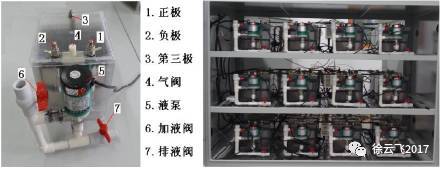 图 8:锌镍单液流电池单体(左)与电池组(右)
