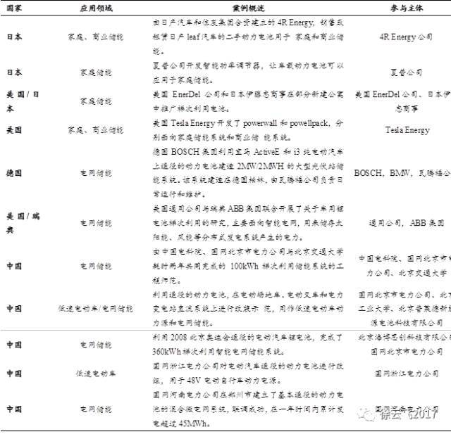 表 7:国内外已逐步开展各类动力电池梯次利用储能示范项目