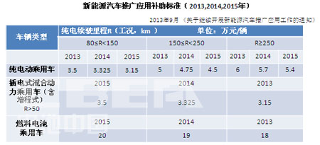 目前执行的新能源汽车推广应用补助标准是参考《关于继续开展新能源汽车推广应用工作的通知》制定的,并且实现退坡机制,即2014年在2013年标准基础上下降5%,2015年在2013年标准基础上下降10%;2015年底补贴政策到期后,中央财政将继续实施补贴政策。