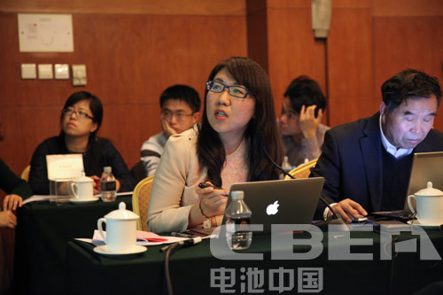 2014年10月28日下午,中关村储能产业技术联盟(CNESA)第14期储能产业公益沙龙在北京昆泰嘉禾酒店举行。图为中关村储能产业技术联盟研究经理李岱昕做主题报告。